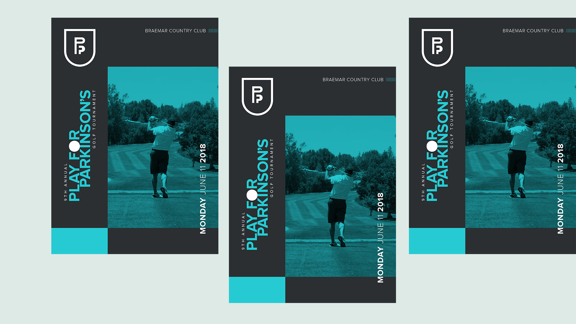 Visual Identity for the 9th eddition of an annual golf tournament in favor of Parkinson's cause in USA.